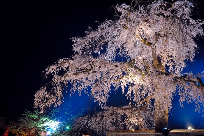1886年(明治19年)開設の、京都市最古の公園。国の名勝にも指定されています。八坂神社の東、東山を背にしてひろがり、回遊式日本庭園を中心に、料亭や茶店があります。また、園内中央には、通称「祇園の夜桜」という有名な桜があり、花を咲かせるたびに訪れる人々の目を楽しませます。正式名は、一重白彼岸枝垂桜(ひとえしろひがんしだれざくら)といい、現在は二代目。この桜を円山公園に寄贈、管理しているのが、桜守と…